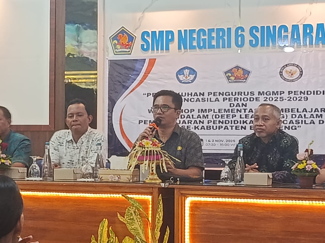 Kepala Dinas Pendidikan Pemuda dan Olahraga (Disdikpora) Kabupaten Buleleng, Ida Bagus Gde Surya Bharata, S. Pd., M. A. P., secara resmi mengukuhkan pengurus Musyawarah Guru Mata Pelajaran (MGMP) Pendidikan Pancasila dan Kewarganegaraan (PPKn) untuk periode bakti 2025 - 2029. Prosesi pengukuhan dilaksanakan di aula SMP Negeri 6 Singaraja pada Jumat, 1 November 2025.