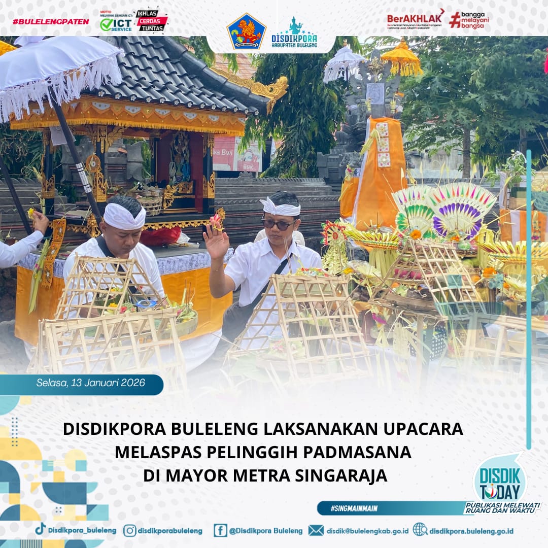 Dinas Pendidikan Pemuda dan Olahraga (Disdikpora) Kabupaten Buleleng menyelenggarakan upacara Melaspas Pelinggih Padmasana yang berlokasi di kawasan Mayor Metra, Singaraja.