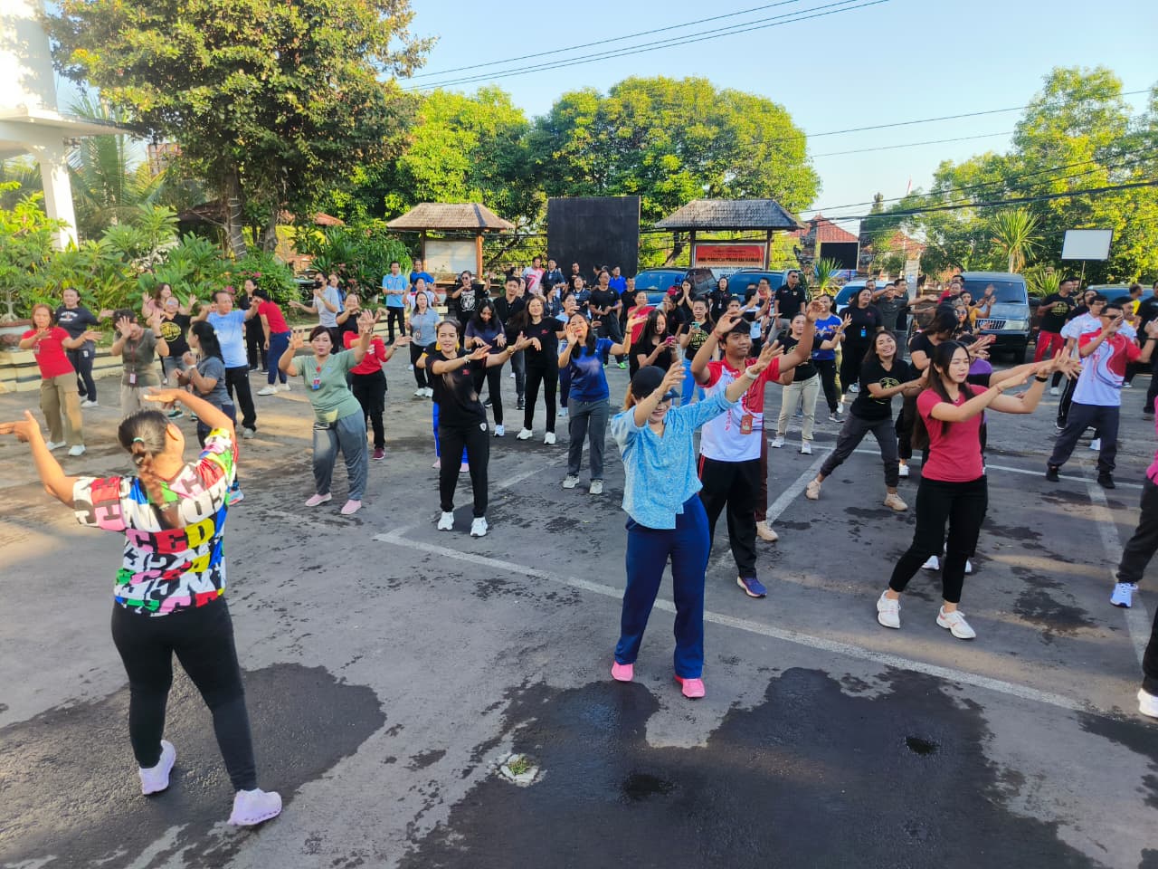 Halaman Kantor Dinas Pendidikan Pemuda dan Olahraga (Disdikpora) Kabupaten Buleleng pagi ini dipenuhi semangat dan keceriaan. Seluruh pejabat, karyawan, dan karyawati Disdikpora Buleleng terlihat antusias mengikuti senam sehat ceria yang rutin digelar.