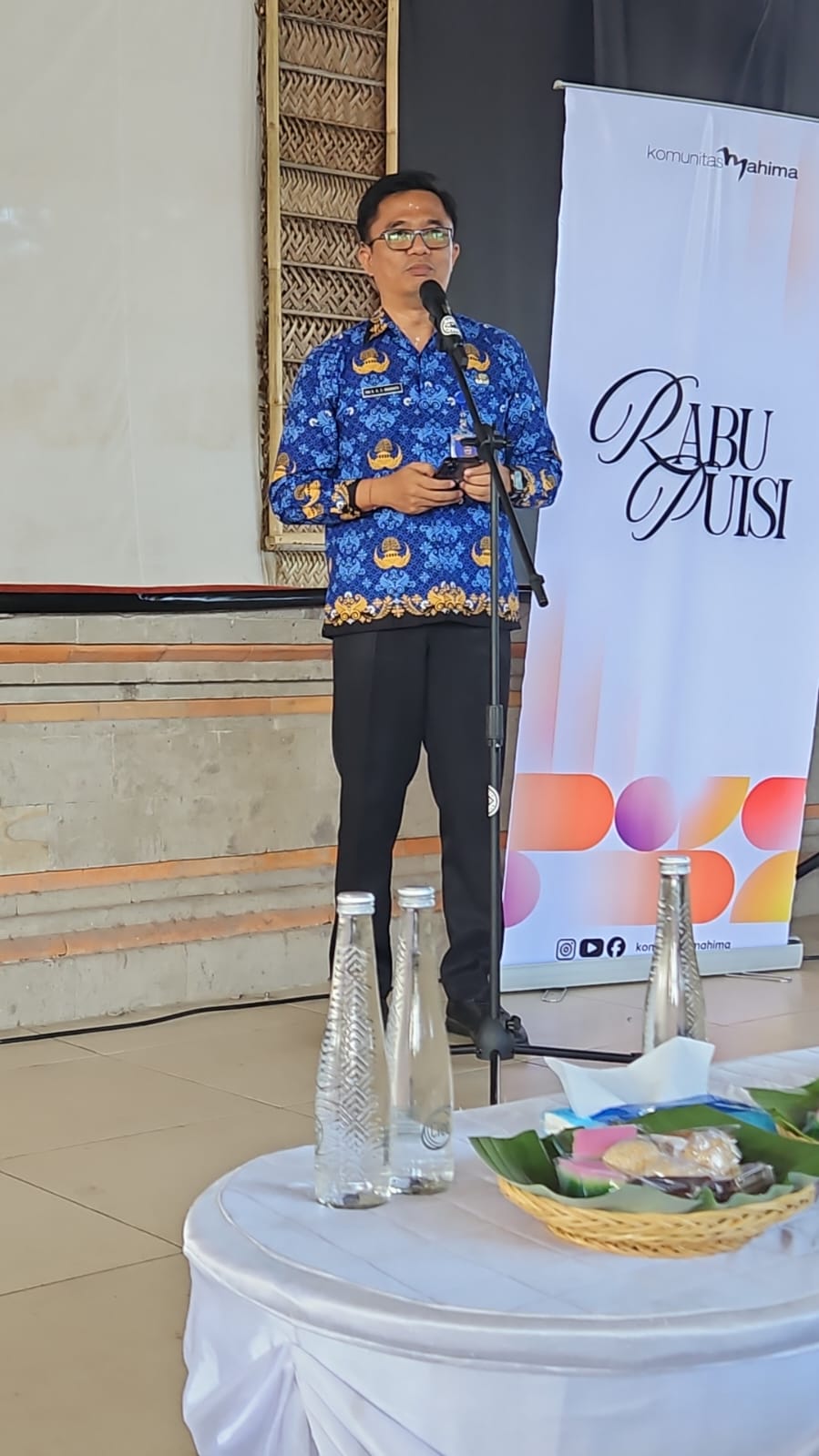 Mewakili Kepala Dinas Pendidikan Pemuda dan Olahraga Kabupaten Buleleng, Sekretaris Dinas Ida Bagus Gde Surya Bharata, S. Pd., M. A. P., menghadiri dan sekaligus membuka secara resmi kegiatan Rabu Puisi dan Seminar Puisi: Singaraja Ibu Kota Kelahiran Puisi Indonesia yang digelar di Kawasan Sasana Budaya, Singaraja. Seminar ini menghadirkan narasumber utama Prof. Dr. I Nyoman Darma Putra, akademisi dan sastrawan terkemuka dari Universitas Udayana.