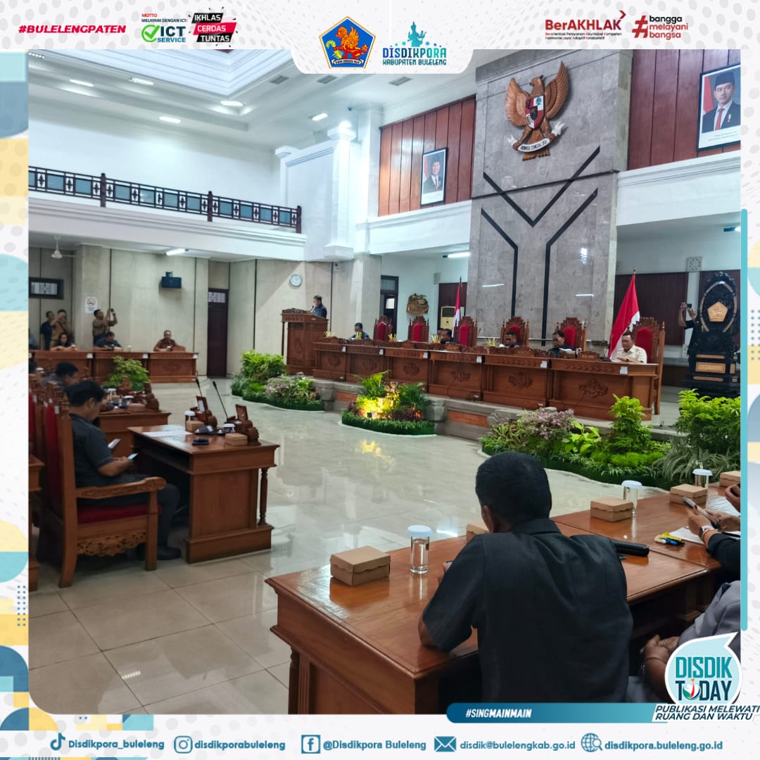 Kepala Dinas Pendidikan Pemuda dan Olahraga Kabupaten Buleleng Ida Bagus Gde Surya Bharata, S. Pd., M.A.P menghadiri Undangan Rapat Paripurna terkait Penyampaian Penjelasan Bupati atas Ranperda tentang Perubahan atas Perda No. 2 Tahun 2017 tentang Penanggulangan Kemiskinan dan Peyampaian Komisi IV DPRD Kabupaten Buleleng