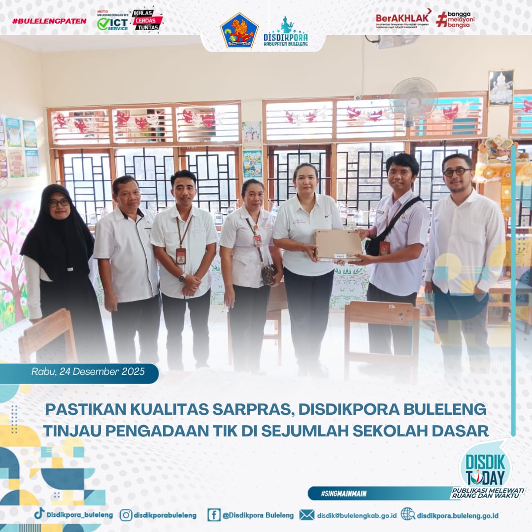 Dinas Pendidikan, Pemuda, dan Olahraga (Disdikpora) Kabupaten Buleleng melakukan pemeriksaan lapangan terhadap pengadaan peralatan Teknologi Informasi dan Komunikasi (TIK) pada Rabu, 24 Desember 2025. Peninjauan ini menyasar tiga sekolah dasar, yakni SD Negeri 3 Julah, SD Negeri 1 Sembiran, dan SD Negeri 2 Banjar Bali.