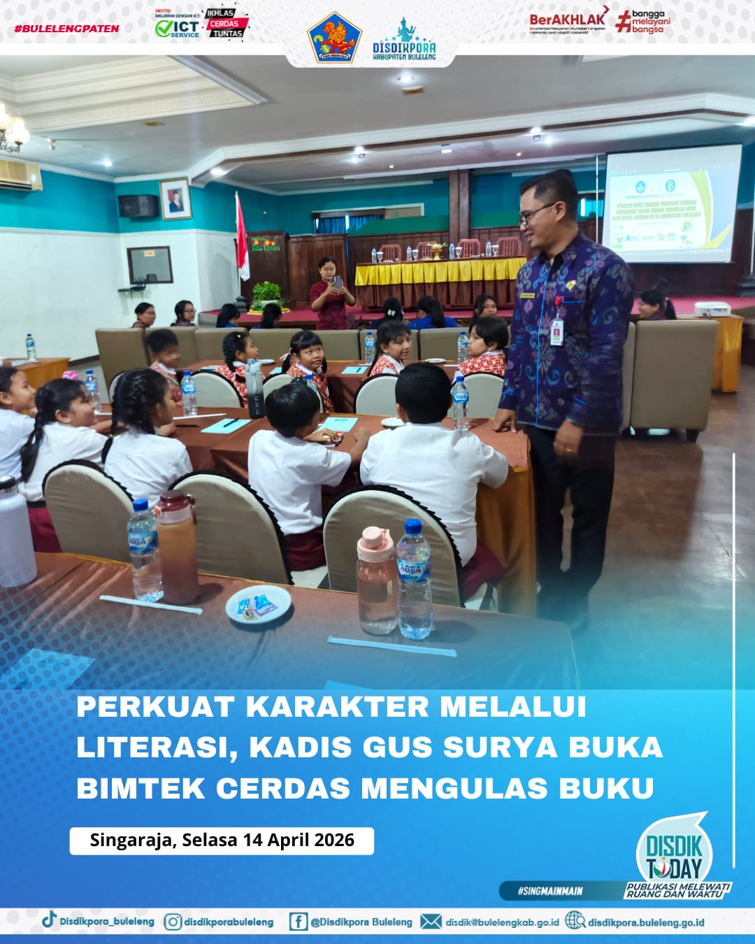 Pemerintah Kabupaten Buleleng melalui Dinas Pendidikan Pemuda dan Olahraga (Disdikpora) terus berkomitmen dalam meningkatkan kualitas Sumber Daya Manusia (SDM) melalui penguatan literasi sejak dini. Hal ini ditegaskan saat pembukaan kegiatan "Bimbingan Teknis: Cerdas Mengulas Buku Bagi Siswa di Kabupaten Buleleng" yang berlangsung di Hotel Bali Taman, Jalan Seririt-Singaraja, Selasa (14/4).