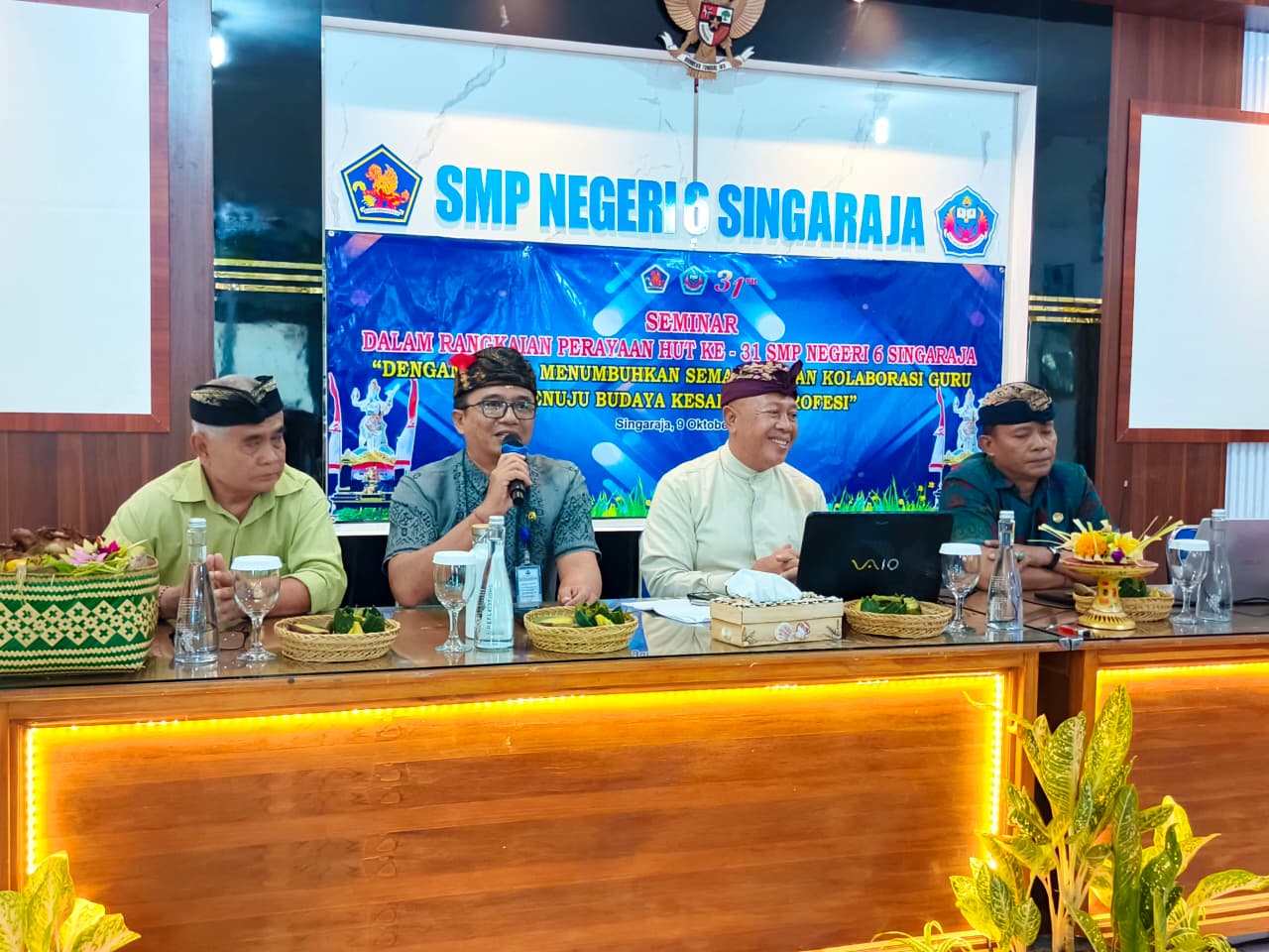 Dalam rangka memperingati Hari Ulang Tahun (HUT) ke-31, SMP Negeri 6 Singaraja menggelar seminar dengan tema "Menumbuhkan Semangat dan Kolaborasi Guru Menuju Budaya Kesadaran Profesi", Kamis (9/10) pagi.