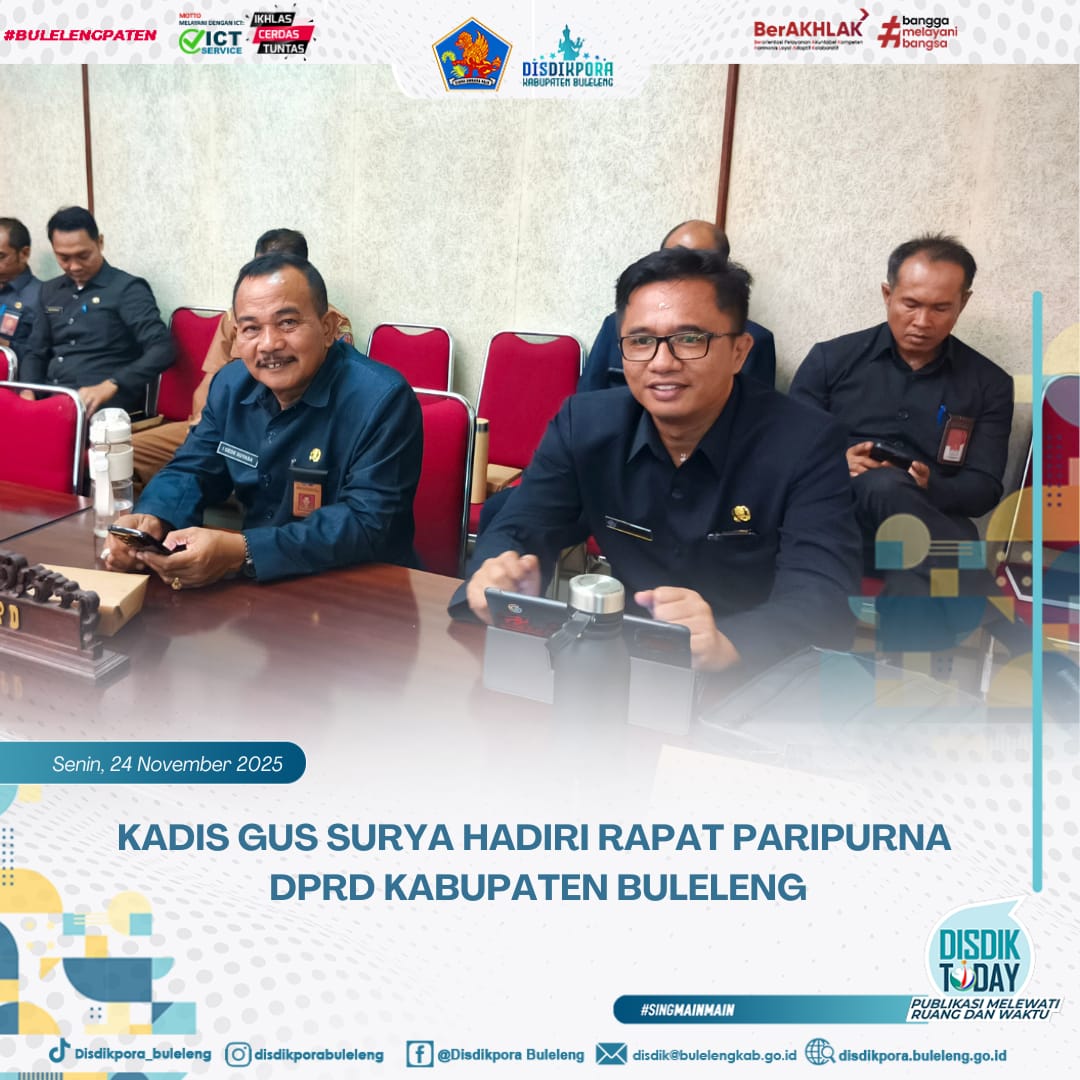 Kepala Dinas Pendidikan Pemuda dan Olahraga Kabupaten Buleleng Ida Bagus Gde Surya Bharata, S. Pd., M. A. P. menghadiri Rapat Paripurna di ruang sidang utama Gedung DPRD Buleleng, Senin (24/11).