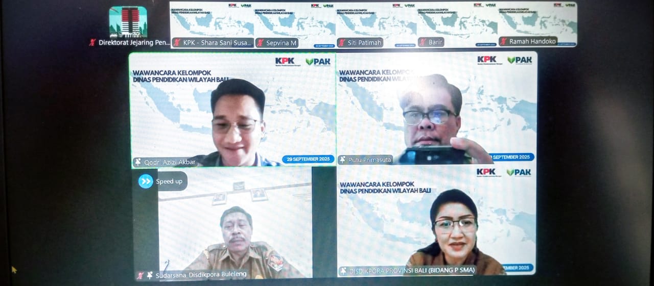 Sebagai bagian dari langkah penguatan Kebijakan Nasional Pendidikan Antikorupsi, KPK baru-baru ini menyelenggarakan wawancara secara daring dengan perwakilan Pemerintah Daerah Kabupaten Buleleng. Wawancara ini bertujuan untuk menggali informasi dan memetakan kebijakan, implementasi PAK di daerah, tantangan, peluang, serta dukungan yang diperlukan, khususnya pada jenjang Pendidikan Anak Usia Dini, Pendidikan Dasar, dan Pendidikan Menengah (Pauddasmen).