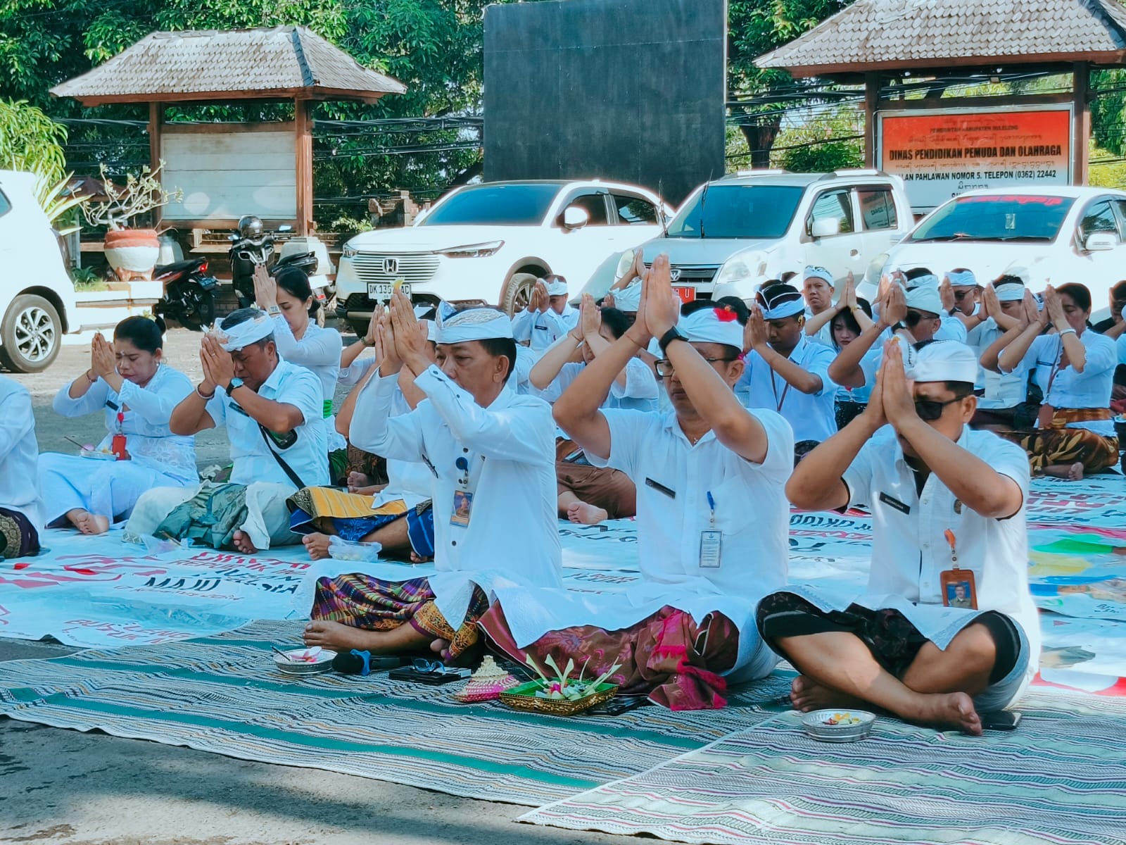 Persembahyangan dimulai dengan Puja Tridandhya dan Kramaning Sembah. Persembahyangan ini sebagai bentuk puji syukur dan terima kasih kepada Ida Sanghyang Widhi Wasa/Tuhan Yang Maha Esa agar senantiasa memberikan anugrah kesehatan, keselamatan dalam melaksanakan tugas dan kewajiban di Disdikpora Kabupaten Buleleng.