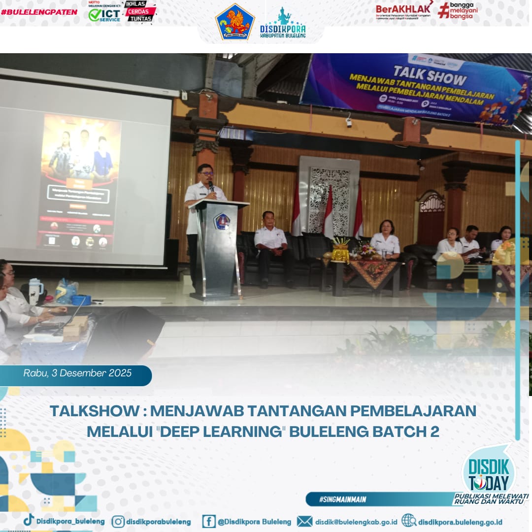 Dalam upaya berkelanjutan untuk meningkatkan kualitas pendidikan di Kabupaten Buleleng, sebuah kegiatan wicara (talk show) edukatif bertajuk "Menjawab Tantangan Pembelajaran Melalui Pembelajaran Mendalam" sukses digelar pada hari Rabu, 3 Desember 2025.