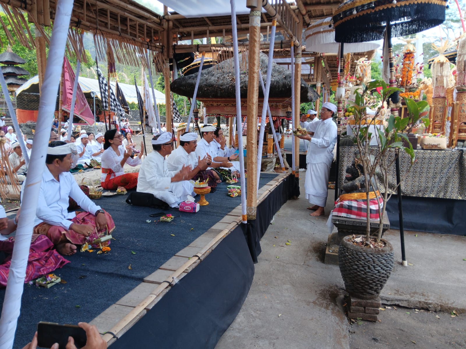 Tampak hadir dalam persembahyangan tersebut Sekretaris Daerah (Sekda) Kabupaten Buleleng, Drs. Gede Suyasa, M.Pd. Pada kesempatan yang sama, Sekda Buleleng juga menyerahkan punia kepada masing-masing pengempon pura sebagai bentuk tali kasih dan dukungan.