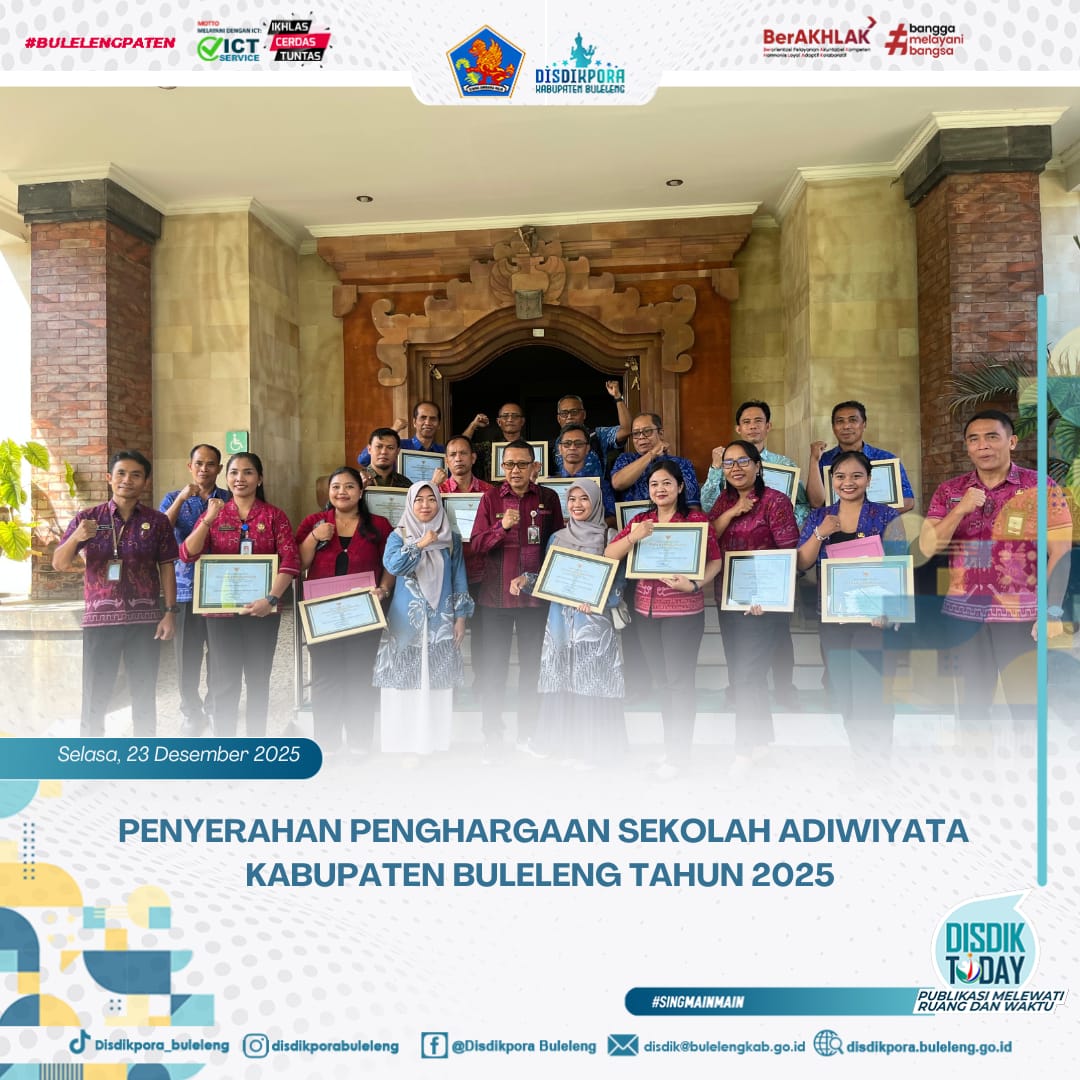 Penyerahan Penghargaan dan SK Penetapan Sekolah Adiwiyata Kabupaten Buleleng Tahun 2025, di Dinas Lingkungan Hidup Kab. Bueleleng, 23 Desember 2025