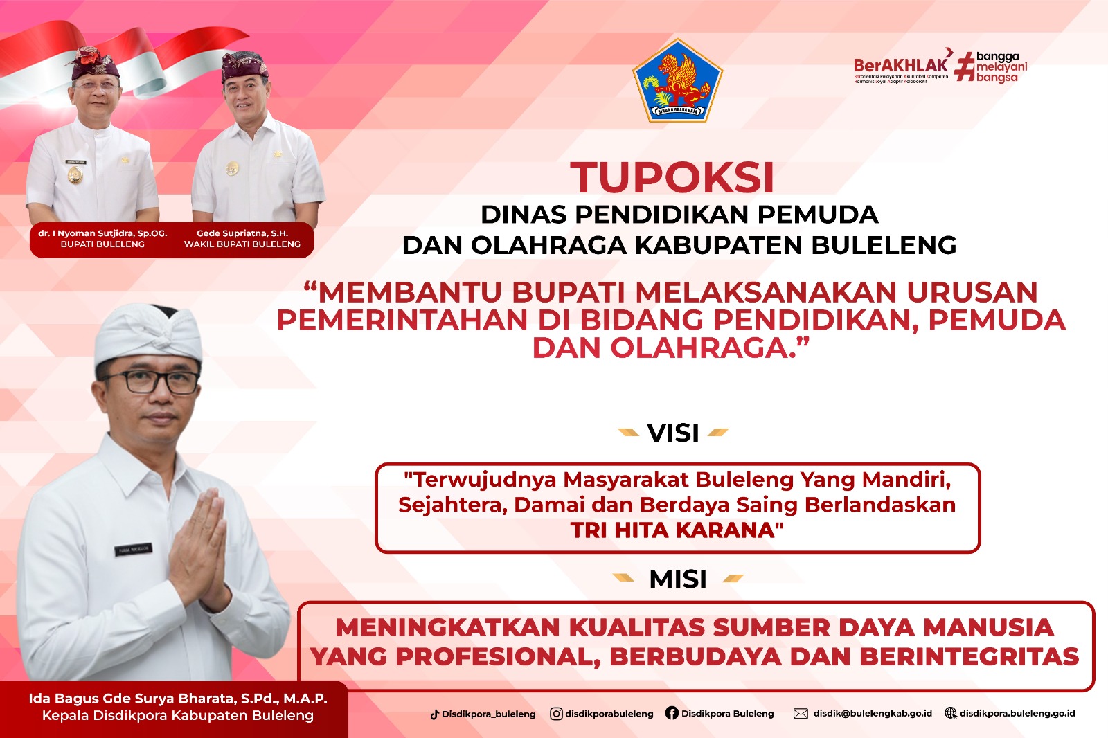 TUPOKSI DINAS PENDIDIKAN PEMUDA DAN OLAHRAGA KABUPATEN BULELENG : MEMBANTU BUPATI MELAKSANAKAN URUSAN PEMERINTAH DI BIDANG PENDIDIKAN PEMUDA DAN OLAHRAGA "